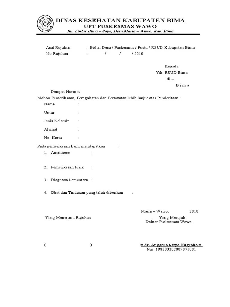 Contoh Format Surat Rujukan Internal Rumah Sakit : Kab Cirebon - (kepala subdit bina upaya kesehatan rujukan di rs publik).